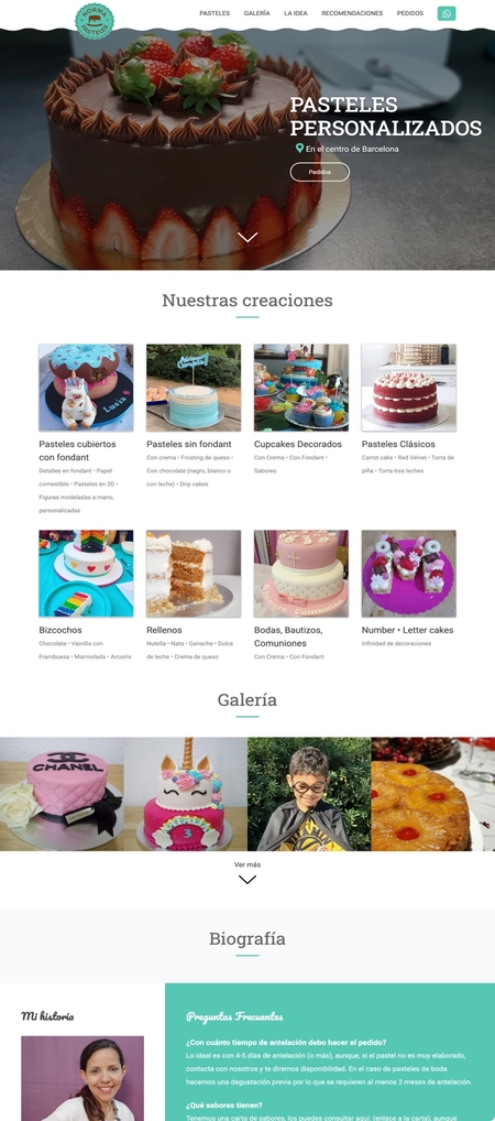 As a first stage, we presented the cakes, their history, and the different steps to place an order, with a site in "One Page" format.